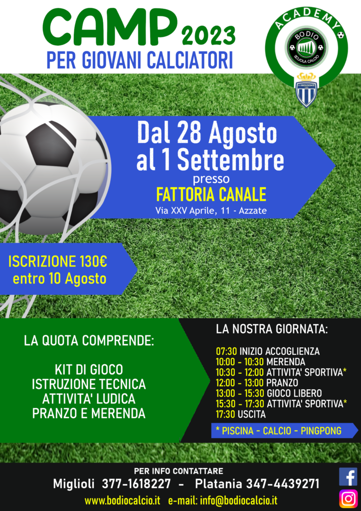 Per la prima volta anche l’Academy Bodio Buguggiate propone un camp estivo per l’ultima settimana di Agosto.